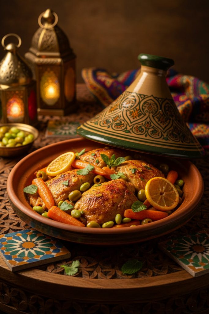 Cooked slowly in a clay pot, Moroccan tagine blends spices, meat, and vegetables into a fragrant, comforting dish.