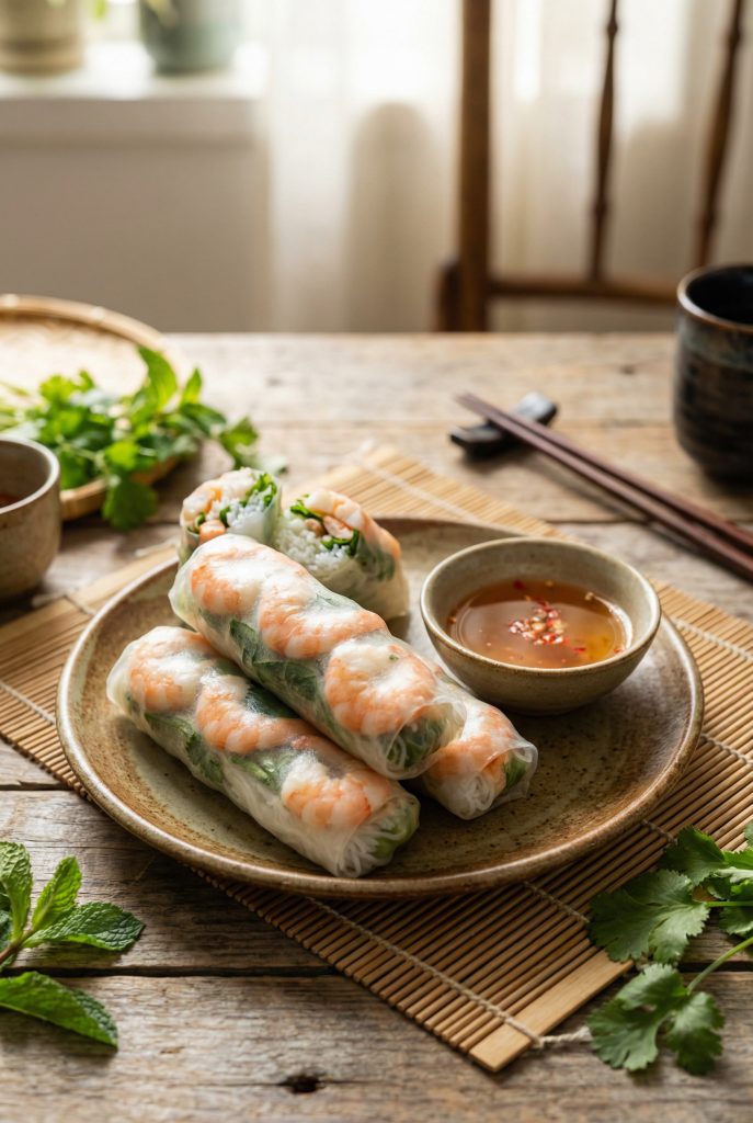 Some comfort foods are cool, not warm. Rice paper rolls filled with herbs, shrimp, veggies, and vermicelli noodles are soft, fresh, and deeply satisfying in a quiet way.