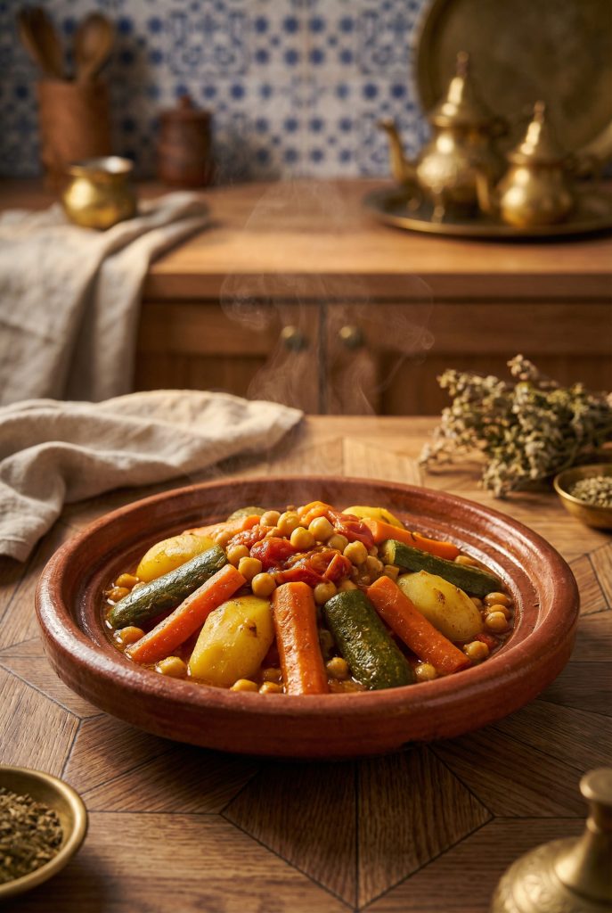 Vegetables simmered with cinnamon, cumin, and paprika create warmth without richness. It’s aromatic, soulful, and deeply grounding.
