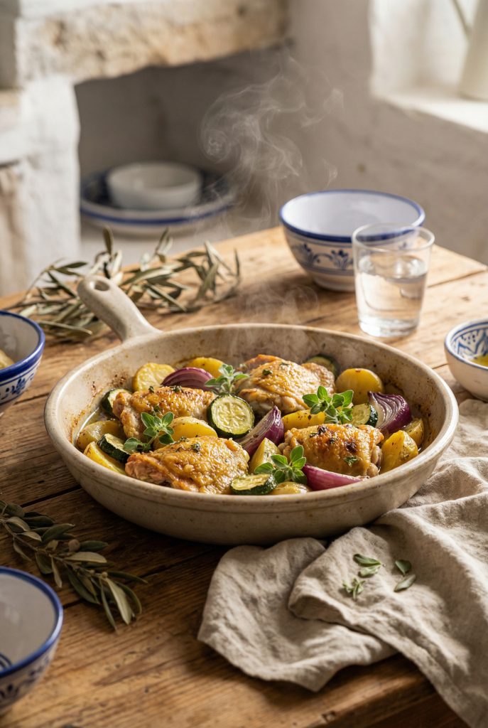 Greek food is sunshine on a plate. This skillet-style dish combines lemon-marinated chicken, zucchini, peppers, and oregano. It is simple, rustic, and deeply comforting.