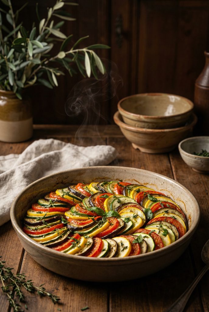 A rustic vegetable stew that showcases seasonal produce and slow cooking.