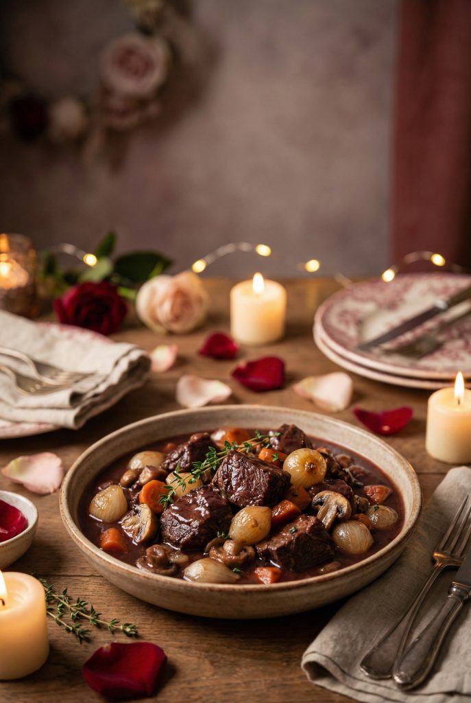 Slow-cooked beef in a rich red wine sauce feels luxurious without being intimidating.